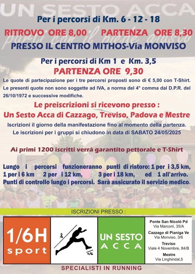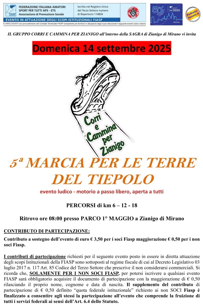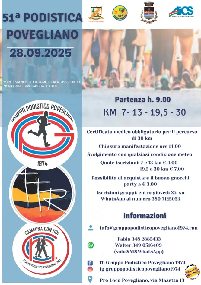 Domenica 28 Settembre – Corsa/camminata non competitiva su quattro percorsi di 7 km, 13 km, 19,3 km e 30 km con partenza alle ore 9:00. Ritrovo Pro loco Povegliano via Masetto 13 ore 8:00