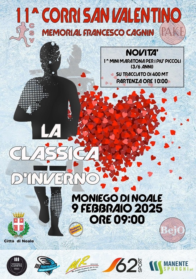 Domenica 16 febbraio – Corsa/camminata non competitiva su cinque percorsi di 2 km, 5 km, 10 km, 15 km e 21 km con partenza libera dalle ore 8:15 alle ore 9:00. Ritrovo palestra di via Vicentino ore 7:45.
