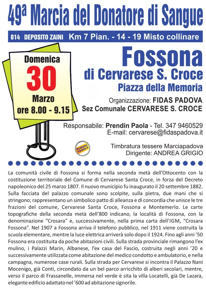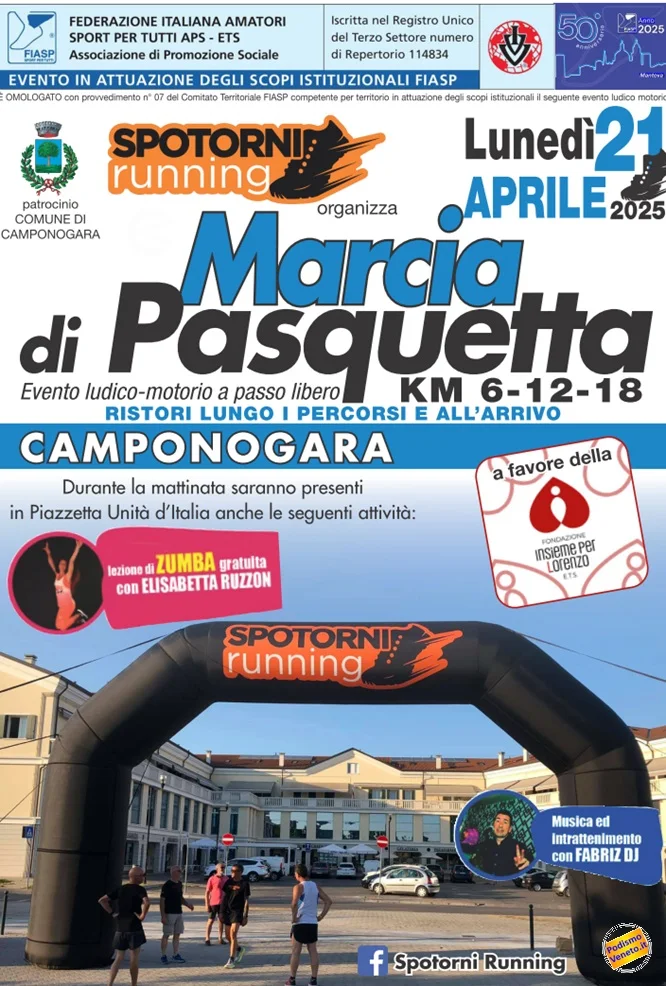 Domenica 30 marzo – Corsa/camminata non competitiva su tre percorsi di 7 km, 14 km e 19 km con partenza libera dalle 8:00 alle ore 9:15. Ritrovo Piazza della Memoria ore 7:30