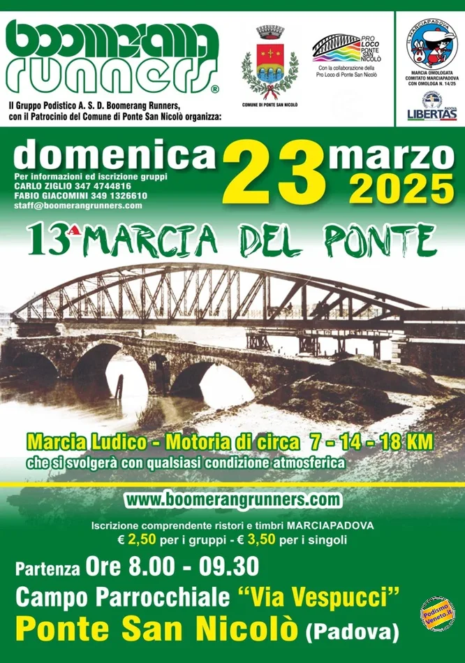 Venerdì 25 aprile – Corsa/camminata non competitiva su tre percorsi di 7 km, 12 km e 18 km con partenza libera dalle 8:30 alle ore 10:00. Ritrovo Piazza Conche ore 8:00