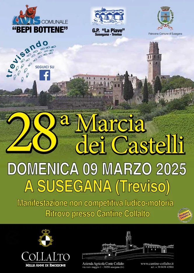 Domenica 9 marzo – Corsa/camminata non competitiva su tre percorsi di 4 km, 7 km, 13 km e 19 km con partenza libera dalle ore 7:30 alle ore 9:00. Ritrovo Cantine Collalto ore 7:00