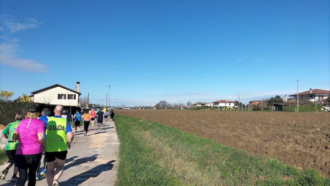Domenica 16 marzo. Appuntamento podistico con la corsa di casa nostra. A Borbiago di Mira (VE) è andata in scena la 23°ma edizione della “Quattro passi in campagna”, non competitiva con organizzazione a cura del Gruppo Capiteo. Ritrovo di gruppo previsto per le ore 7:30. Presente il gruppo al gran completo. Nonostante il meteo inclemente abbia imperversato fino a sabato, un sole splendido accoglie l’arrivo dei partecipanti e temperatura intorno ai 10°C, il tutto a preannunciare un inizio di primavera. Classici i tre percorsi proposti di 6 km, 12 km e 19 km oltre a mini corsa per bambini di 3 km e corsa arcobaleno per diversamente abili nel segno della massima inclusività. Oltre millecinquecento i partecipanti presenti. Percorsi ormai più che rodati e sviluppatisi lungo le campagne intorno al paese molto ben percorribili nonostante la pioggia caduta in settimana. Come sempre ristoro finale all’altezza della situazione con dolci, panini e bibite “ad libitum”. Premiazione finale per tutti i gruppi partecipanti con cesta di vini e insaccati de casada e premiazione pure per i primi atleti arrivati nelle varie categorie. Alla prossima.