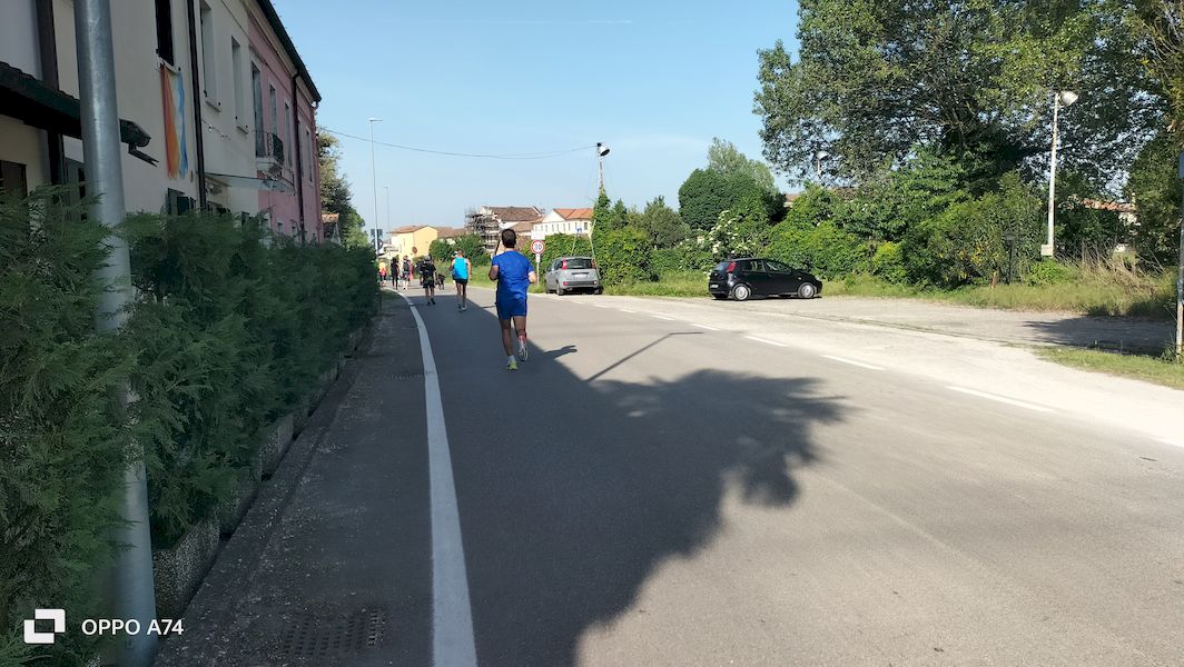 11 km e la mezza maratona sui 21 km. Andrea e Gabriella in preparazione alla prossima Venice optano per un 21 km “di mantenimento” mentre tutti gli altri vanno per il percorso intermedio. Tracciati prevalentemente su strada asfaltata salvo qualche breve tratto di sterrato. Voto alla corsa e