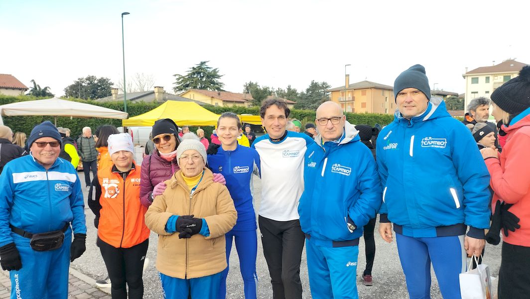 Lunedì 6 gennaio e primo appuntamento di gruppo dell’anno fissato a Salzano (VE) con la 11°ma edizione della “Corri con la befana”, non competitiva con organizzazione a cura di Nat Run Group e Pro Loco Salzano. Presenti direttamente in loco il Maestro Vittorio, Andrea the Slicer, Carlo, Luca, Andrea, Mauro, il ciuffo Roberto, il Gianni, Noemi, Cristina, Daniela. Giornata uggiosa e fredda al punto giusto con temperatura intorno ai 4°C. Annunciati oltre mille partecipanti. Due i possibili percorsi di 6 km e 10 km (tutti con partenza a partire dalle ore 9:05) e mini run di 500 m (con partenza dalle ore 9:00). Corsa piacevole svoltasi quasi interamente su strada asfaltata e che si è sviluppata nell’intorno del paese di Salzano. Ristoro finale ben fornito e prontamente saggiato dai nostri. Voto alla corsa ed all’organizzazione 8. Alla prossima.