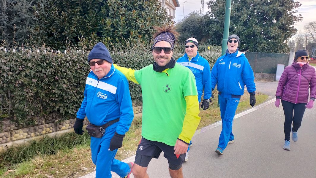 Domenica 12 gennaio ed appuntamento podistico in quel di Maerne (VE) per 17°ma edizione della “Marcia della solidarietà”, corsa non competitiva con ricavato devoluto in beneficenza in favore di varie associazioni benefiche. Ritrovo direttamente in loco ore 8:30. Presenti Andrea, il Gianni, Andrea the Slicer, il Silvio, Alberto, Roberto “il Ciuffo”, Carlo, Luca, Andrea, Fabio e le sempre splendide “Capiteo Mantees” Gabriella, Valentina, Betta. Tre i percorsi previsti di 6 km, 14 km e 21 km. Meteo soleggiato e temperatura bella frizzantina intorno a -2° C. Annunciati oltre un migliaio gli atleti. Il grosso del gruppo decide per il percorso intermedio. Assenze di lusso alquanto impreviste quella del Maestro Vittorio e del Pupillo (che stiano preparando qualche prestazione roboante stile salita al Monte Rua??). Prima parte del tracciato che porta gli atleti in direzione Olmo per poi portarsi verso nord in zona del parco Laghetti di Martellago e fino alle zone a sud di Martellago. Ristoro finale ben fornito con panini, dolci e bibite calde. Voto alla corsa e all’organizzazione 9. Alla prossima.