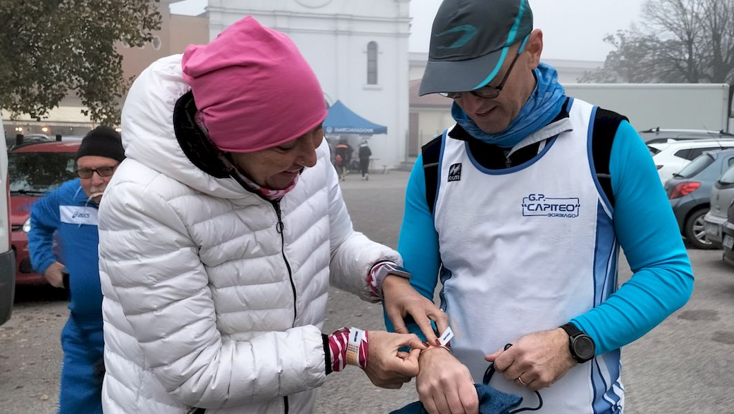 11 km e la mezza maratona sui 21 km. Andrea e Gabriella in preparazione alla prossima Venice optano per un 21 km “di mantenimento” mentre tutti gli altri vanno per il percorso intermedio. Tracciati prevalentemente su strada asfaltata salvo qualche breve tratto di sterrato. Voto alla corsa e